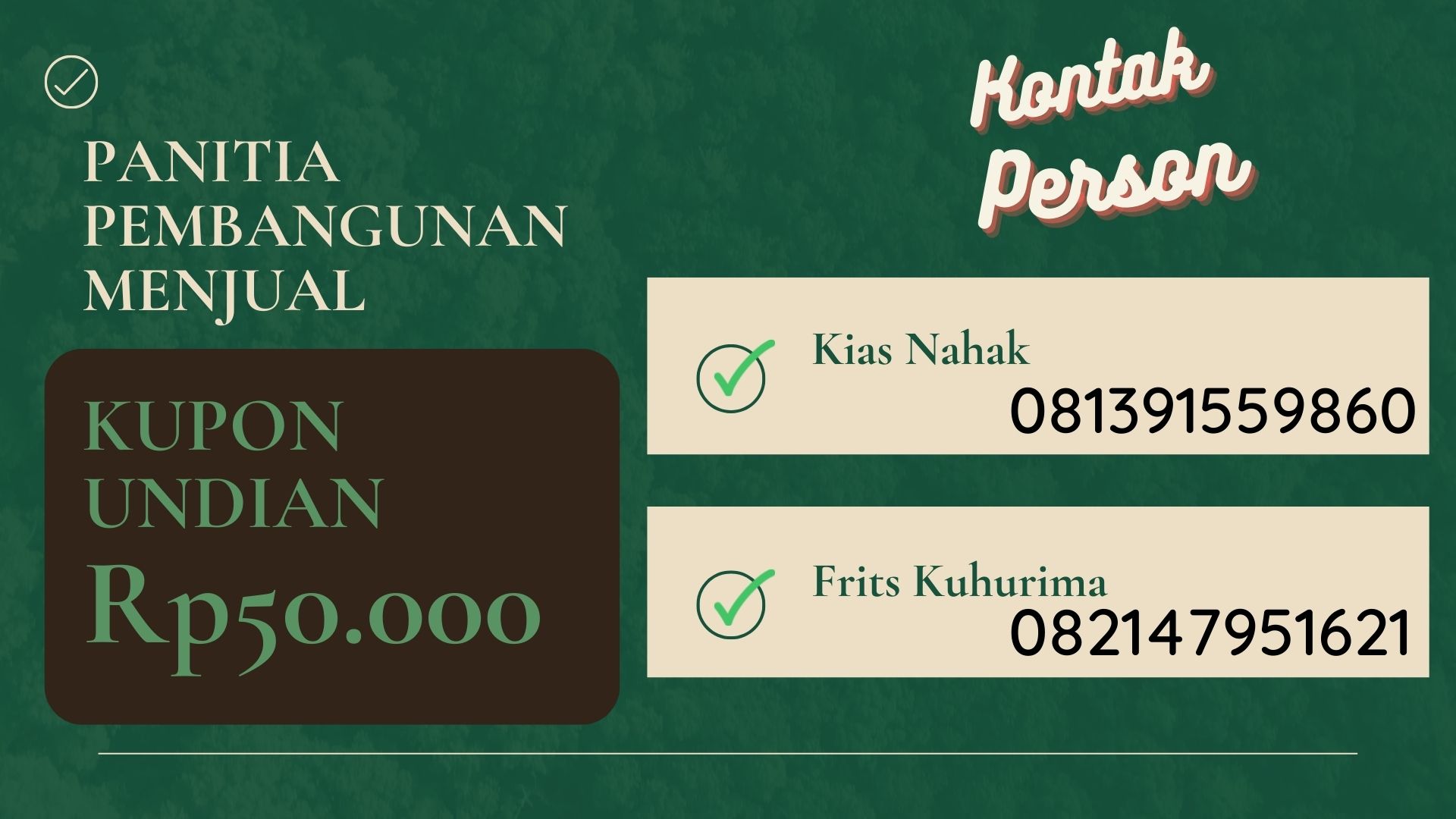 Untuk mendukung Pembangunan Gedung Pelayanan Jemaat KoinoniaKupang yang berlokasi di Lingkungan VII melalui penjualan Kupon Berhadiah, maka sangat diharapkan partisipasi jemaat kiranya setiap keluarga dapat membeli Kupon Berhadiah minimal 1 bulan 1 lembar. Pembelian melalui Majelis Jemaat di Lingkungan masing-masing. Penarikan dilaksanakan pada HUT JKK tanggal 07 November 2022. Atas partisipasi jemaat diucapkan terima kasih.